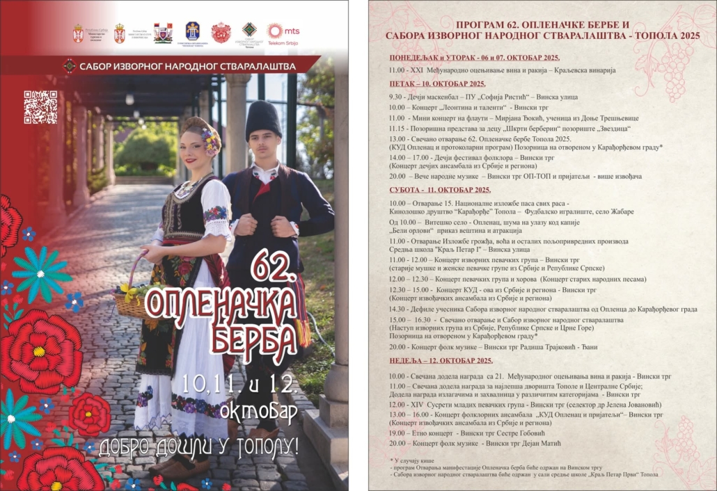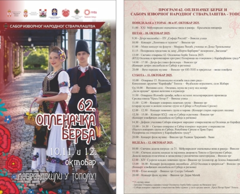 • 62. Опленачка берба3. октобар 2025. - 09:34